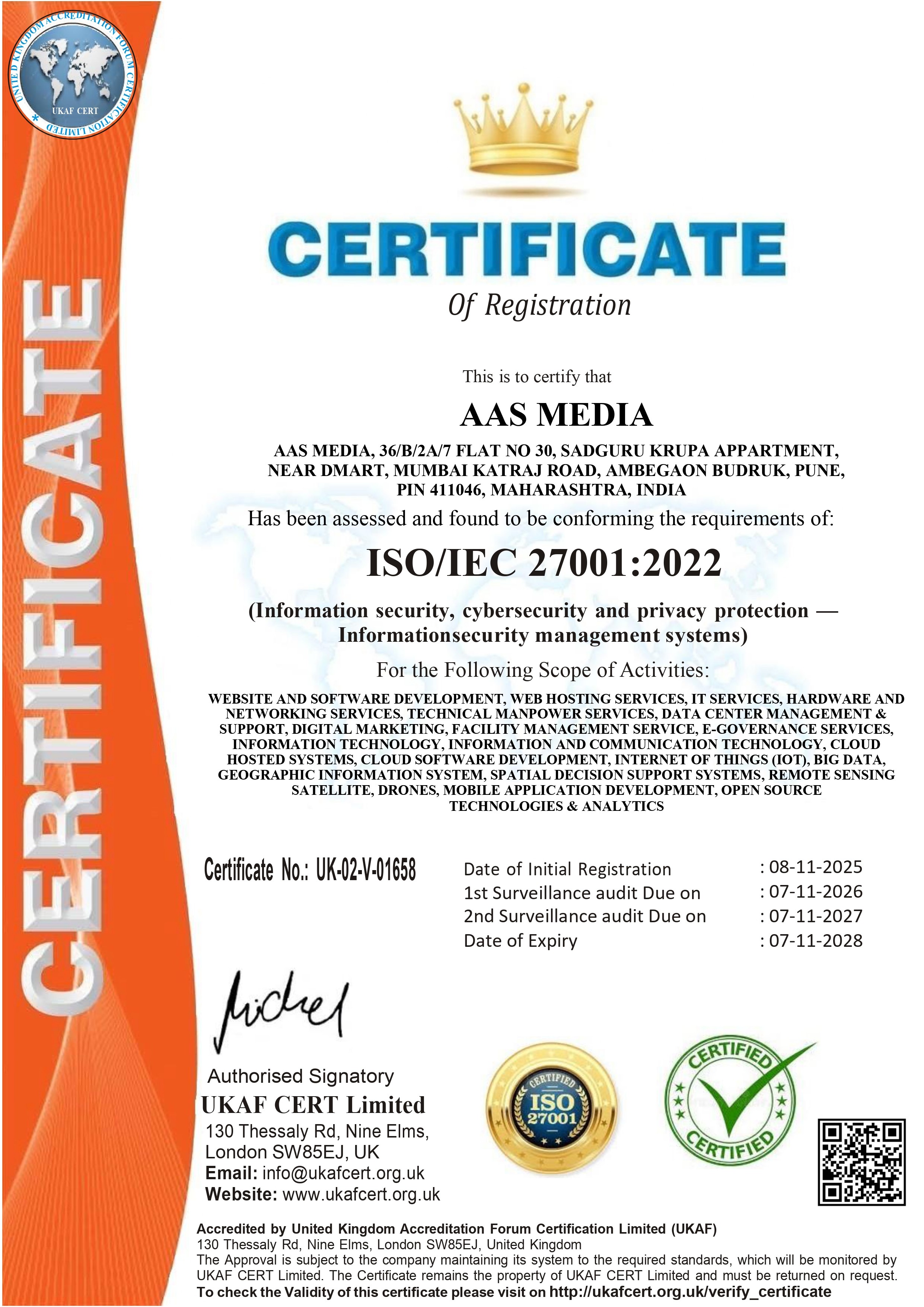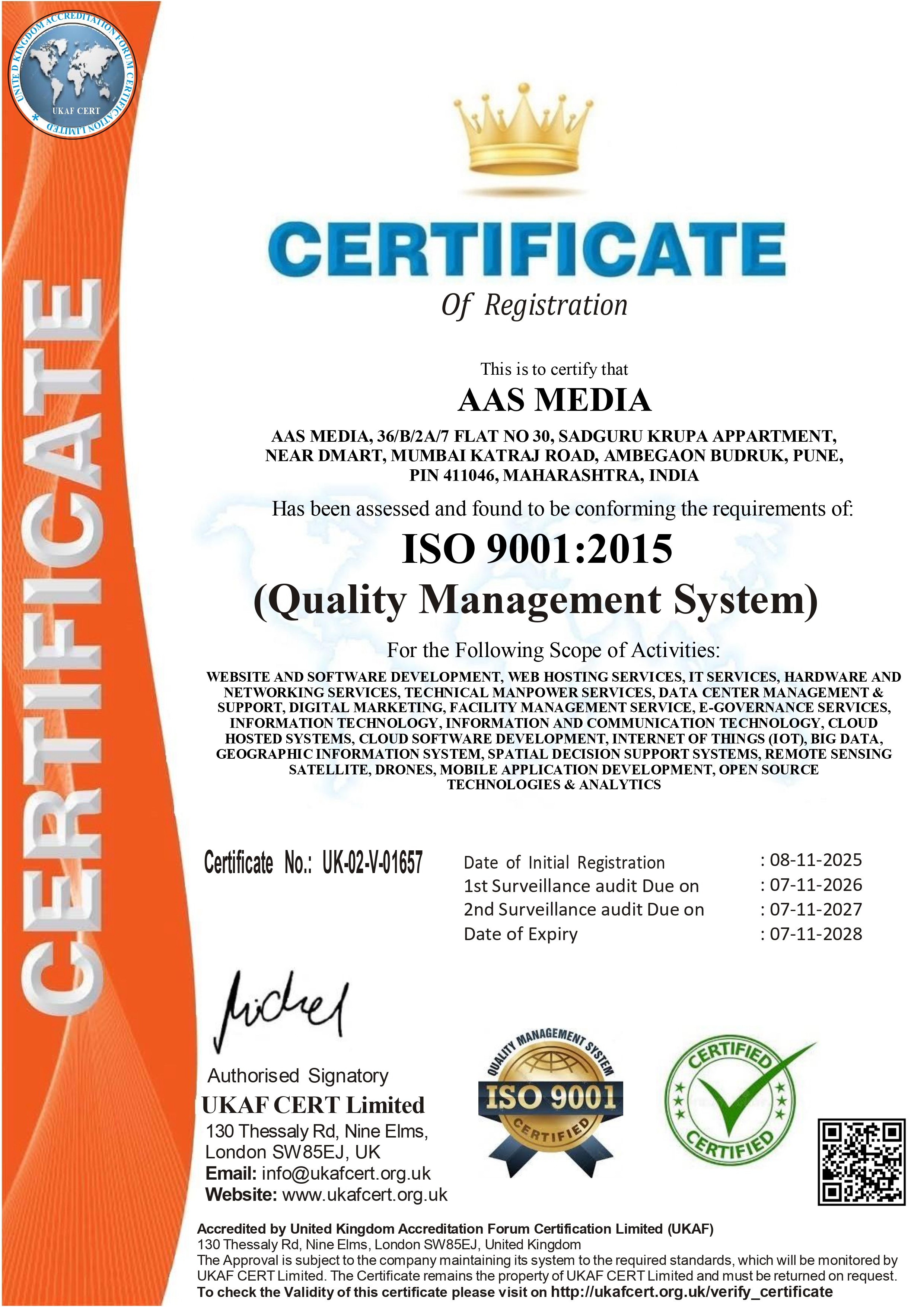 AAS Media is a dual-certified ISO 9001:2015 and ISO/IEC